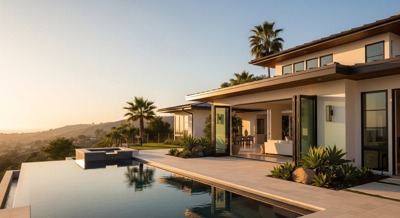 The versatile floor plan features 4 bedrooms in one wing and a private en-suite on the opposite side, ideal for guests or multigenerational living. Set on a flat, resort-style yard designed by Peter Koenig, the outdoor space is an entertainer's paradise with a pool, spa, automatic pool cover, and a full outdoor kitchen equipped with a BBQ, refrigerator, warming drawer, overhead heaters, and sleek granite countertops.